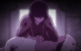 Yomi and Musubi are fighting and Yomi has fun tearing Musubi's clothing apart. Musubi takes advantage of Yomi being completely engulfed in her thoughts of humiliating her, and touches Yomi's crest, recites her prayer and terminates Yomi.[22] Musubi later explains to Minato that a Sekirei who loses her crest can never see her Ashikabi again.